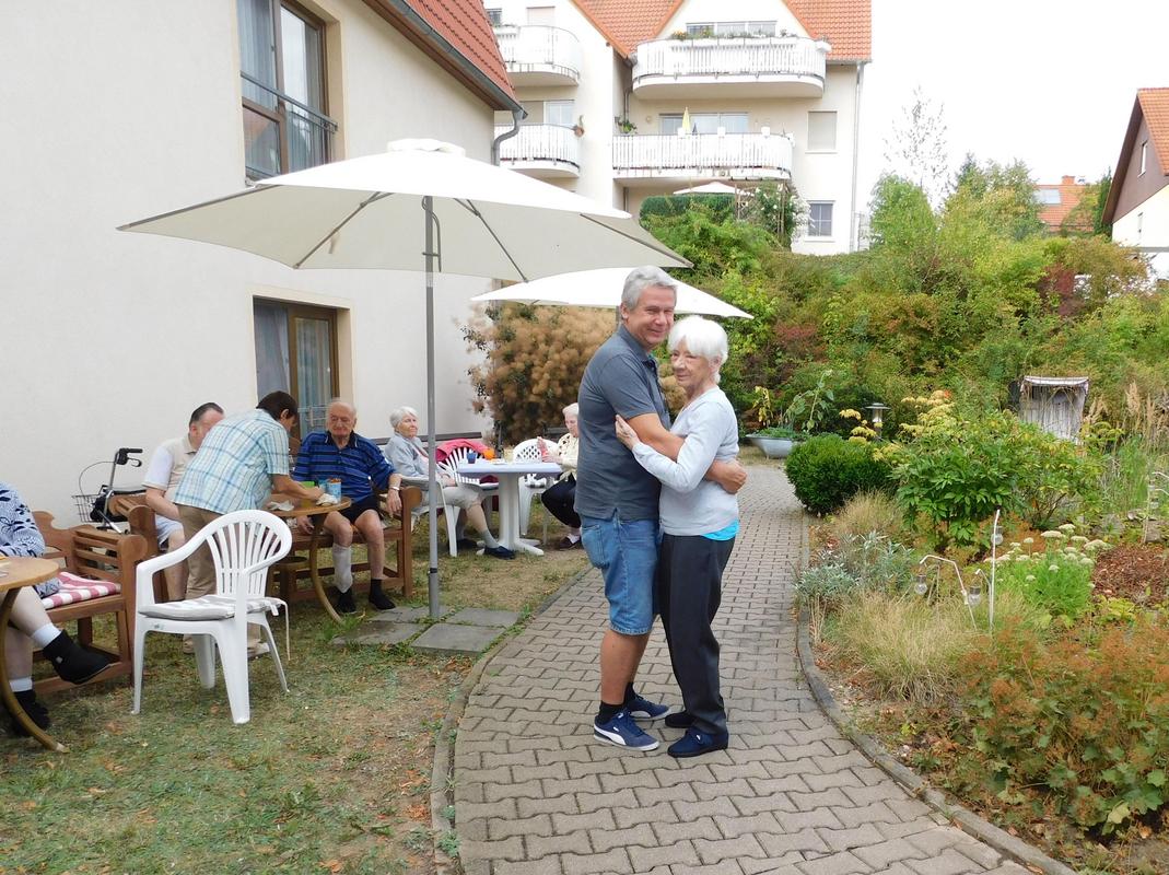 Zu unseren alljährlichen Grillfesten, die am 20., 21. Und 22. August stattfanden, waren die Musiker „Rocco und Marc“ unsere Gäste. Bei einer bunten Mischung aus erzgebirgischen, volksmusikalischen und auch Schlagerliedern wurde geklatscht, geschunkelt und auch getanzt. Unsere Bewohnerinnen und Bewohner fanden sich gemeinsam mit ihren Angehörigen im Innenhof ein und nach ein paar Eröffnungsworten durch Heimleiterin Silvia Schönherr und Franziska Dech-Teichert (Verantwortliche Sozialer Dienst) ging es auch schon mit dem musikalischen Rahmenprogramm los. Bei herrlichem Sonnenschein gab es von den Seniorinnen und Senioren zubereitete Sommerbowle und Knabbergebäck.